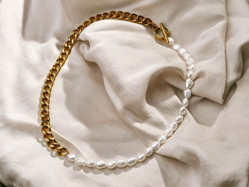 Hochwertige Goldkette mit echten Süßwasserperlen und feiner 18k Vergoldung